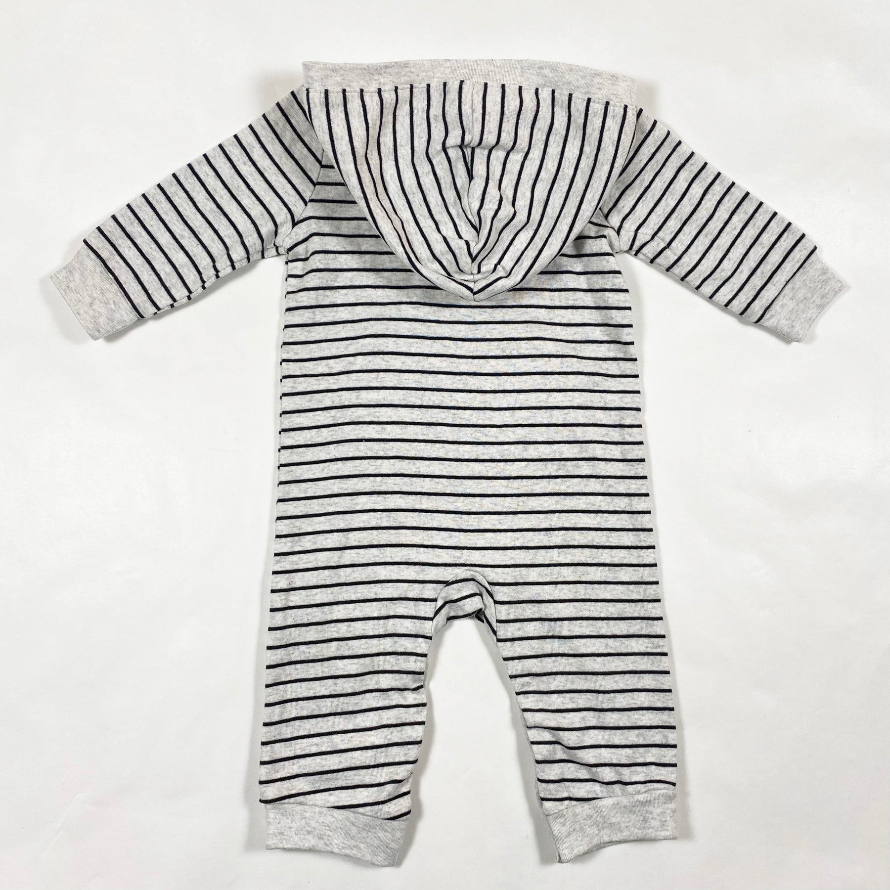 Little Me grey stripe hooded jumpsuit 9M 2