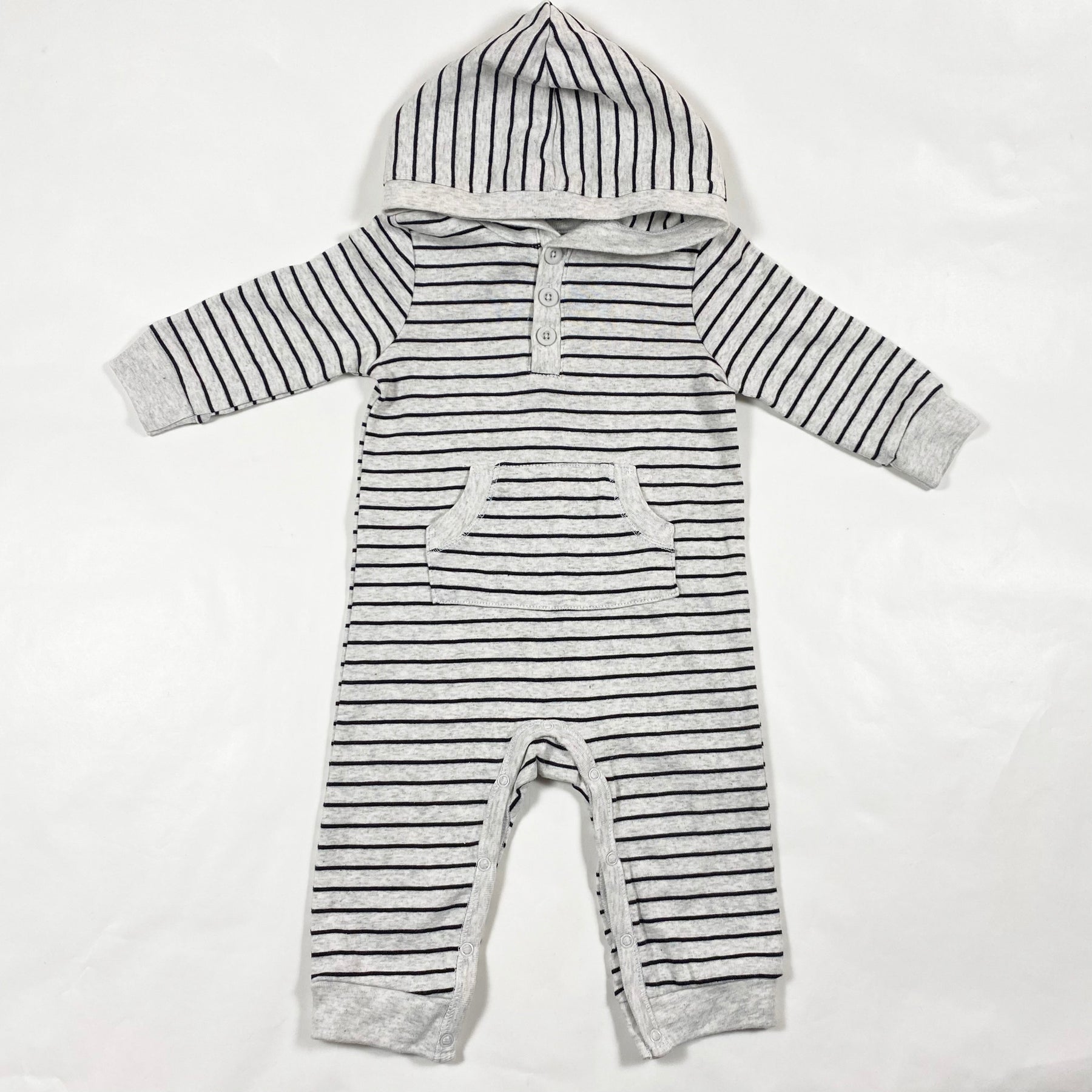 Little Me grey stripe hooded jumpsuit 9M 1